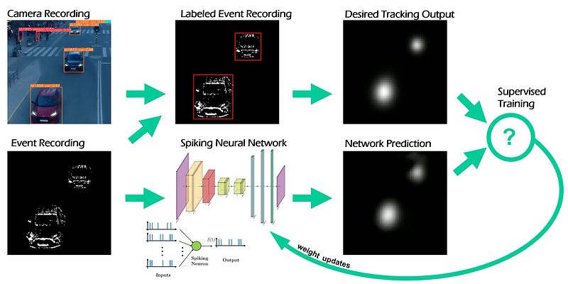 Here, we combine research on object tracking in event cameras with neuromorphic processors to track urban traffic in real-time with unprecedented power efficiency and accuracy. This is a valuable commodity for the optimization of urban environments, and directly improves the citizens’ quality of life.
